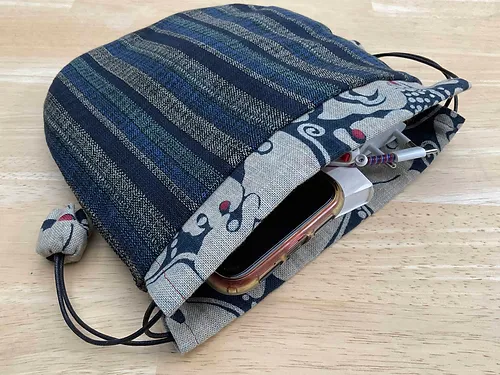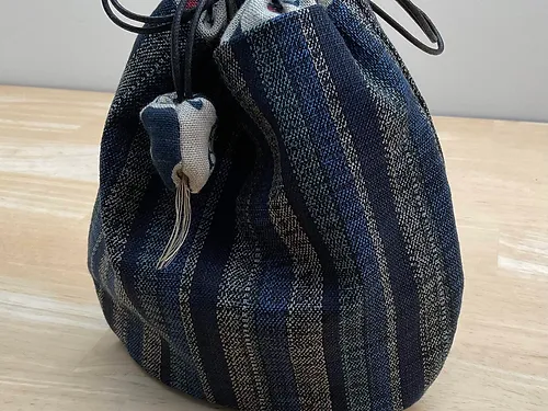 Japanese Kinchaku pouch with stripes / butterflies motifs