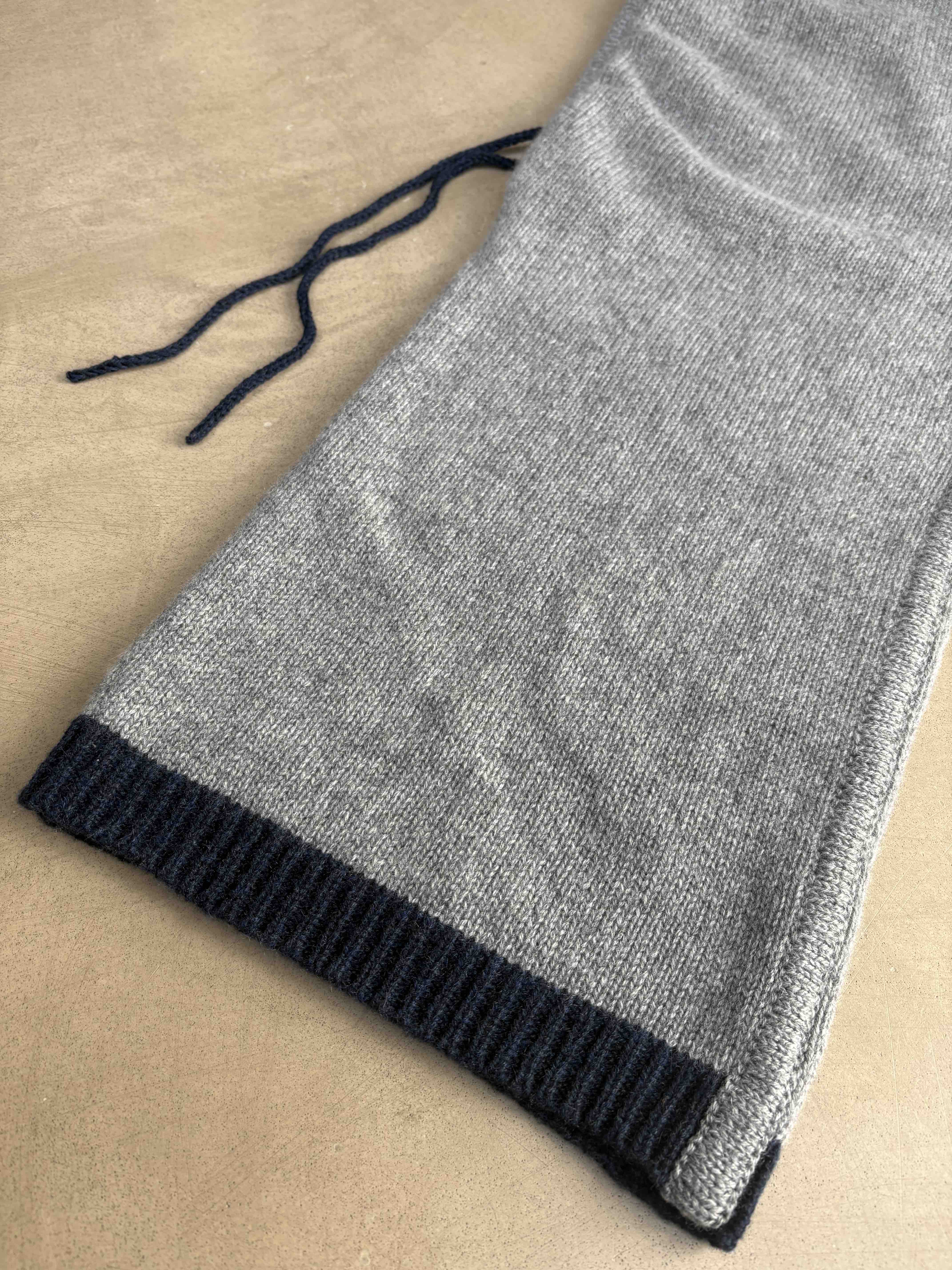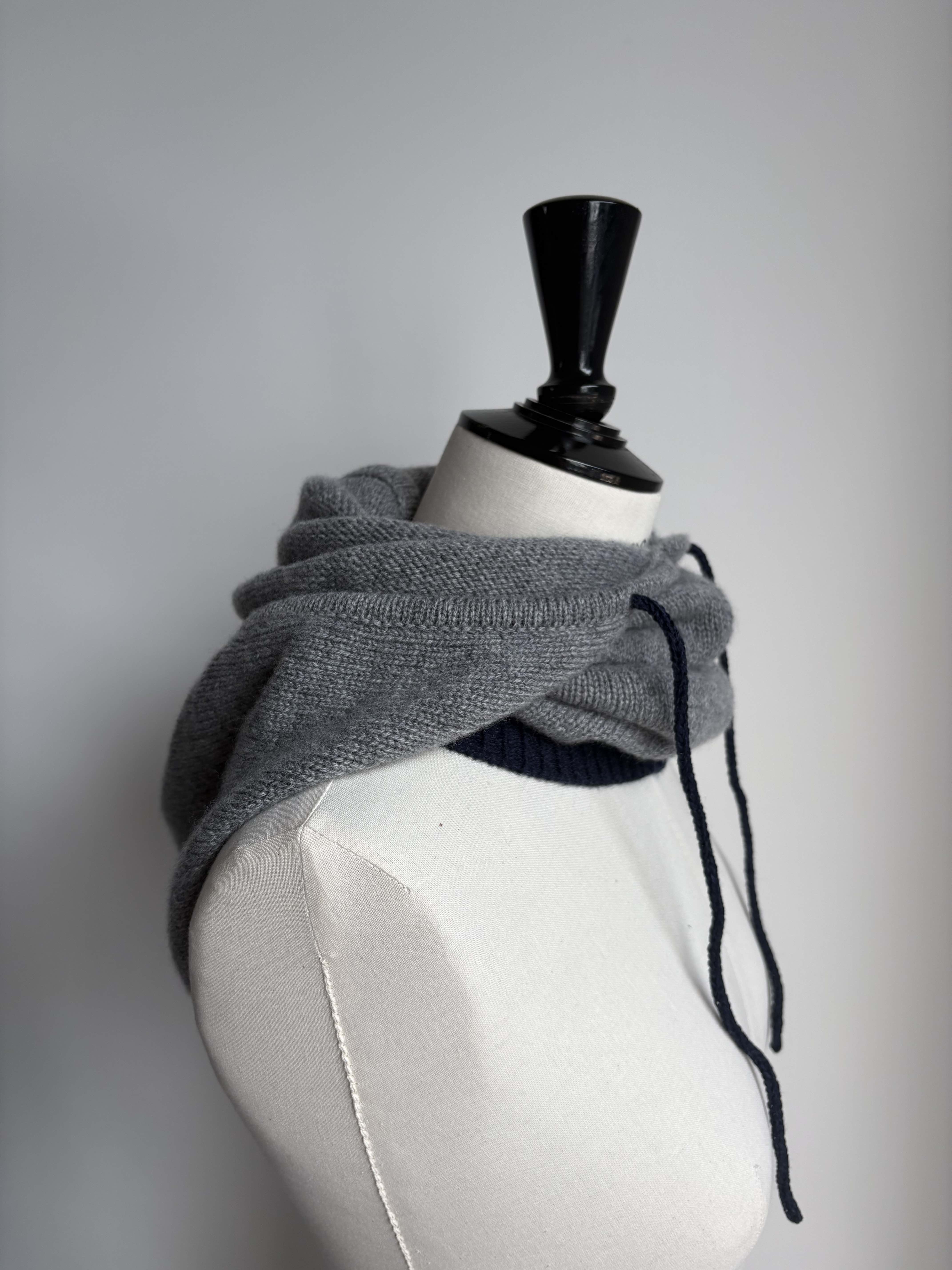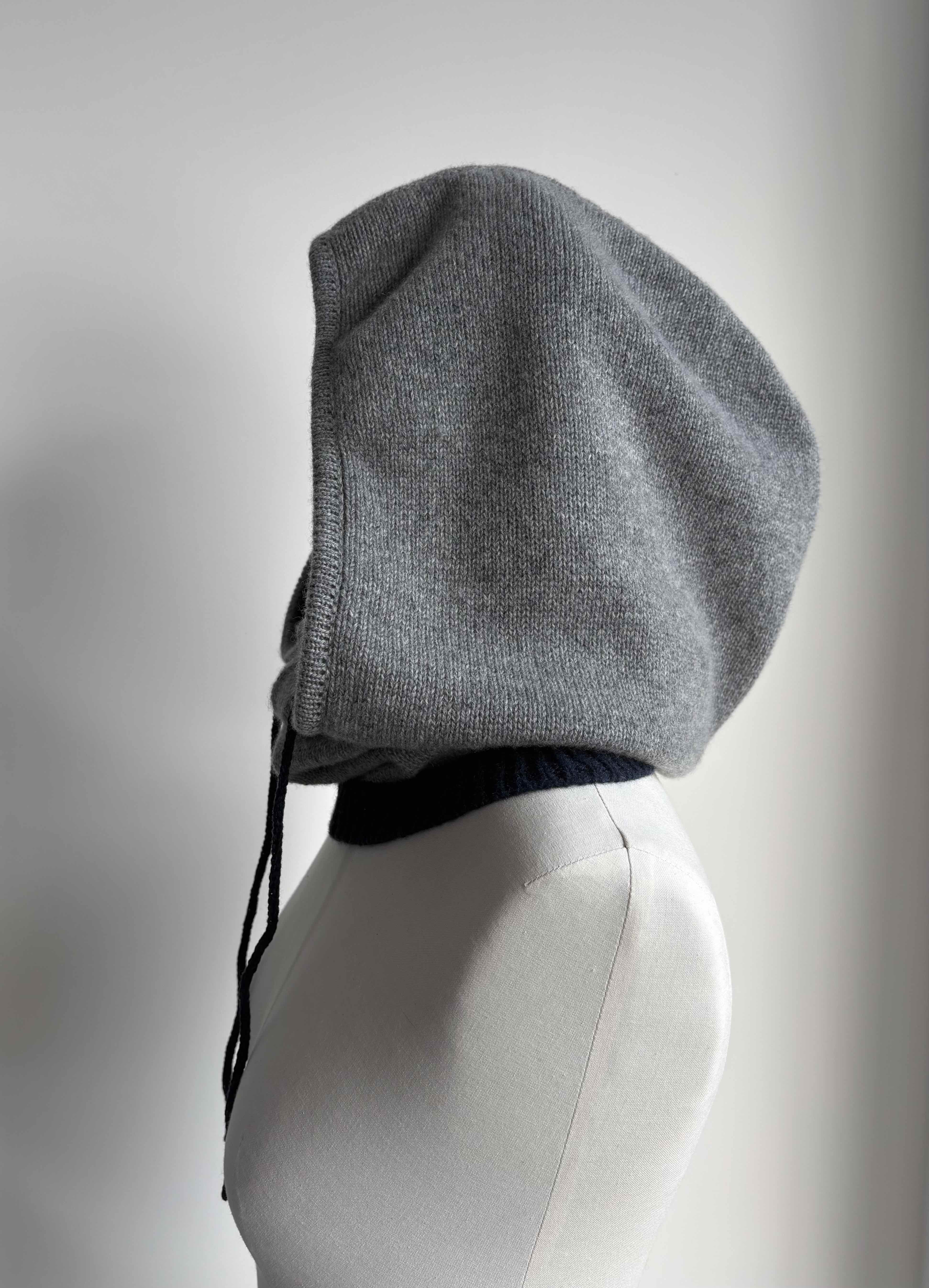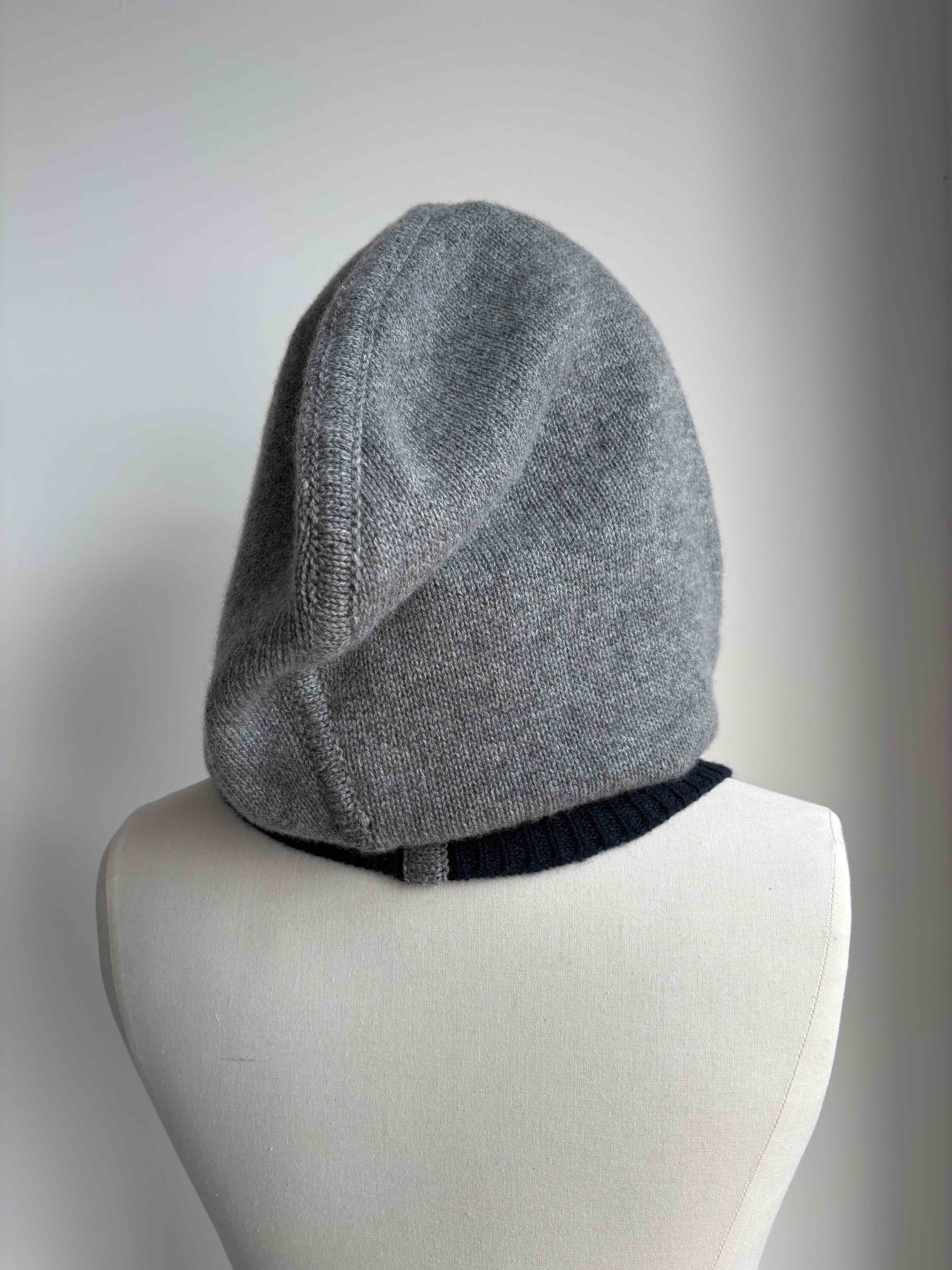 Balaclava capuche / cagoule pur cachemire jersey bicolore gris flanelle / marine chiné anthracite
