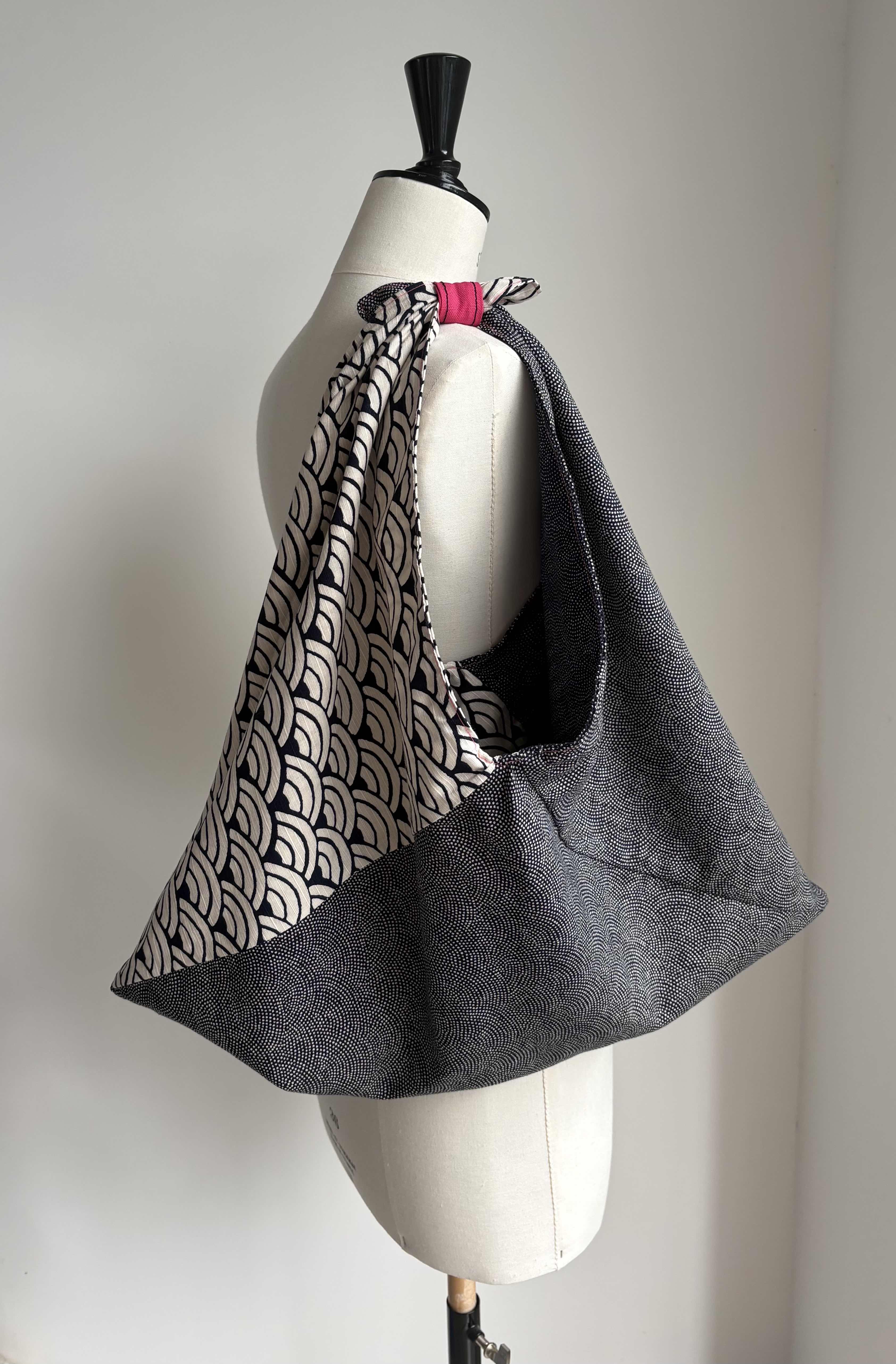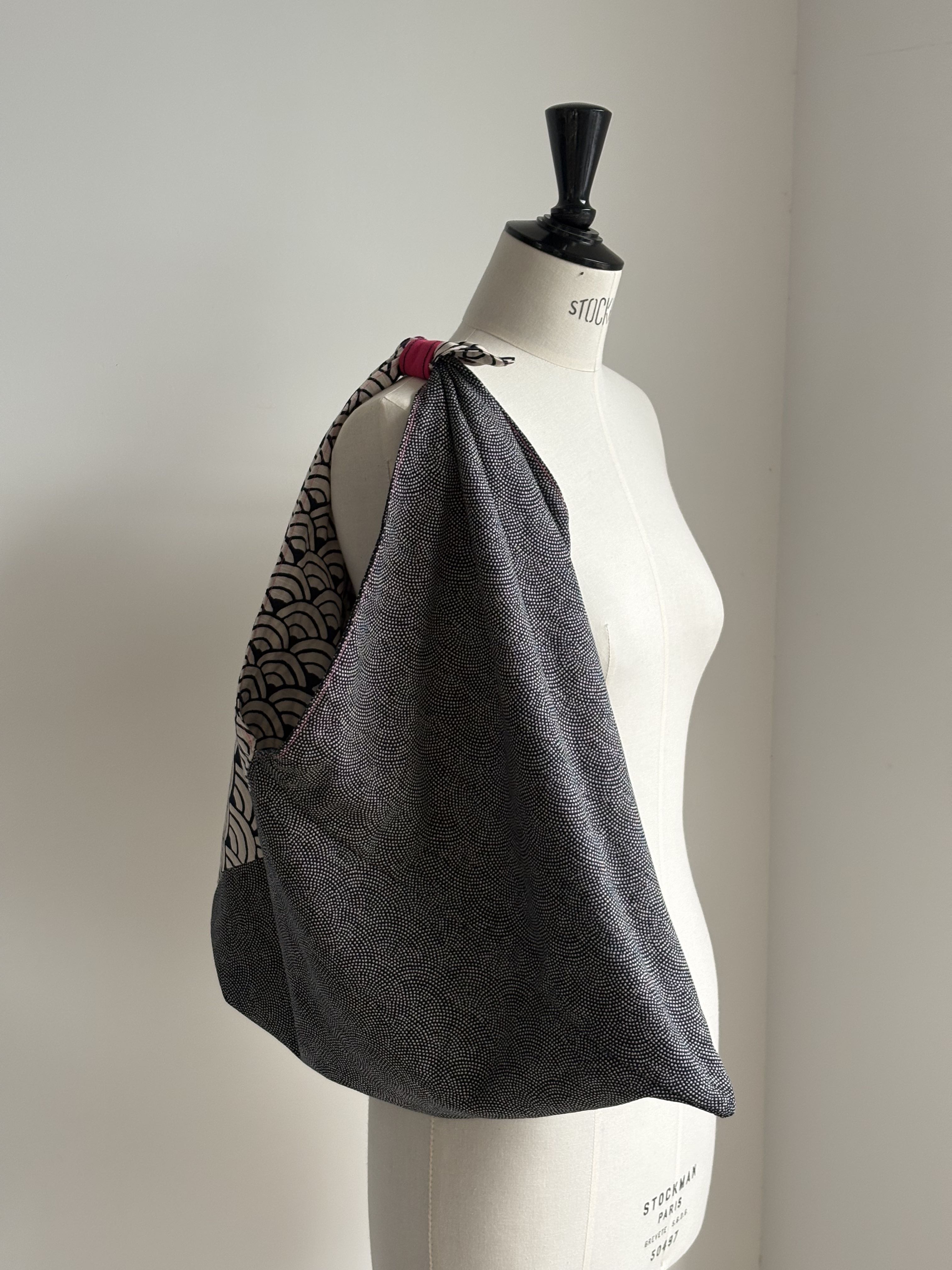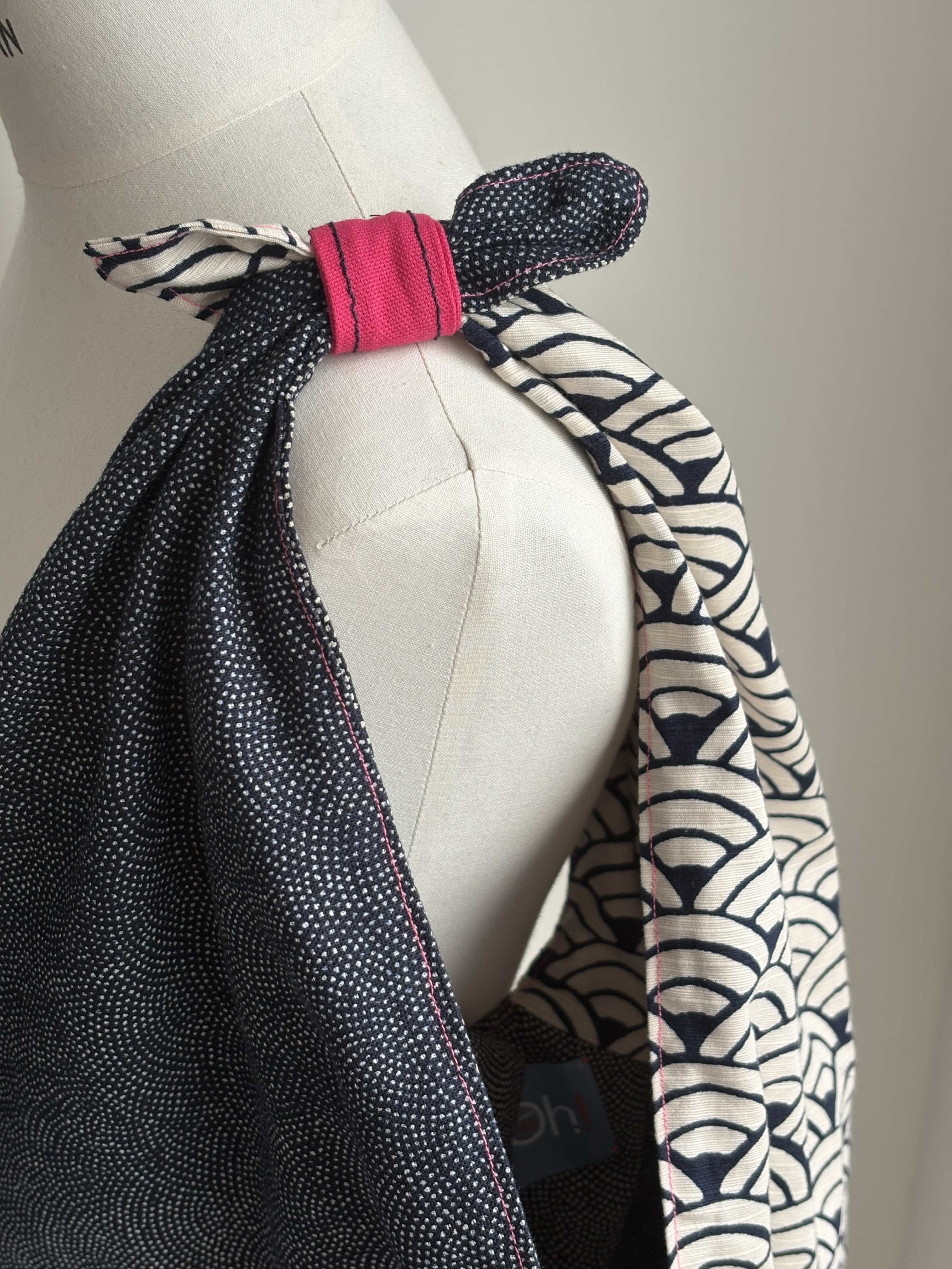 1 avis pour Sac origami réversible coton japonais motifs vague indigo / blanc